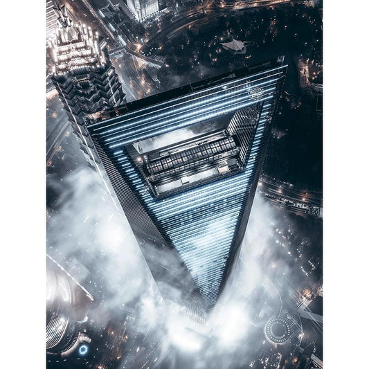 City On The Cloud Black Modern Wood Framed Art Print by Tien, Aron