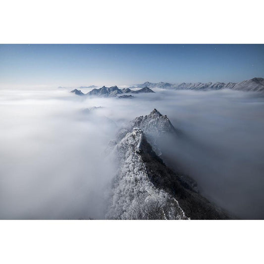Great Wall Moonlight Starry Sky Cloud Sea Black Modern Wood Framed Art Print by Lee, Kim