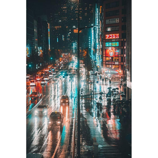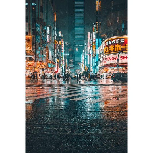 Tokyo Darkness Black Modern Wood Framed Art Print by Ootama