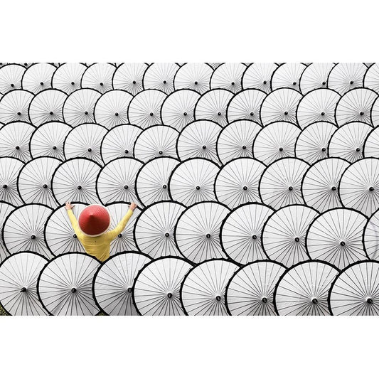 White Umbrella Black Modern Wood Framed Art Print by Herliyanto, Gatot