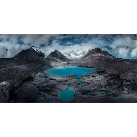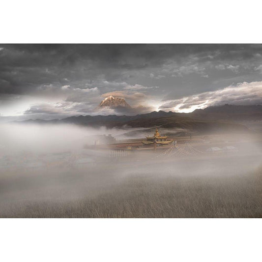 Muya Pagoda And Yala Snow Mountain Black Modern Wood Framed Art Print by Simoon