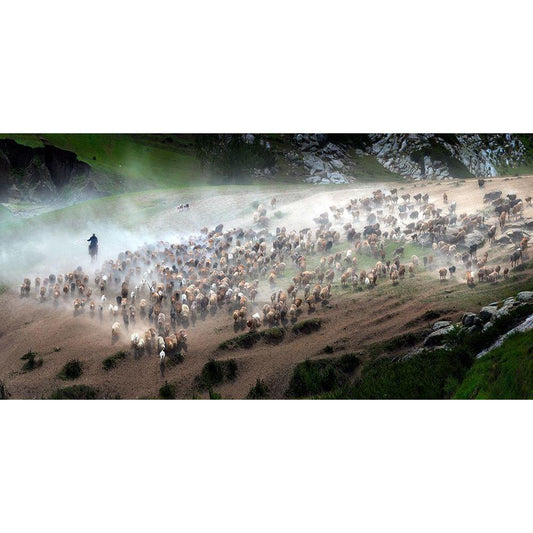 The Great Migration Of Kazakh Black Modern Wood Framed Art Print by Zhu, Hua
