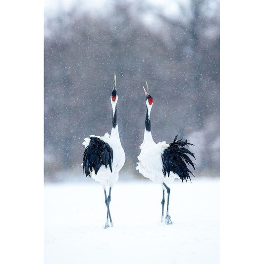 Tsuru (Crane)-Pair Black Modern Wood Framed Art Print by Uota, Katsu