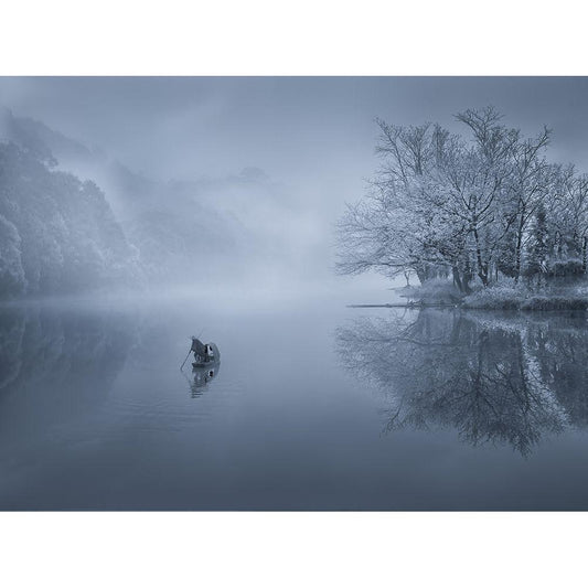 Sailing To The Fog Black Modern Wood Framed Art Print by Guoji