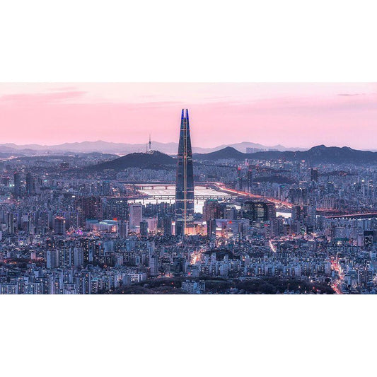 Seoul City Black Modern Wood Framed Art Print by Eom, Gwangseop