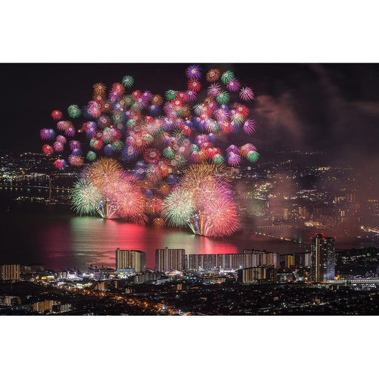 Lake Biwa Fireworks Black Modern Wood Framed Art Print by Ito, Tatsuki