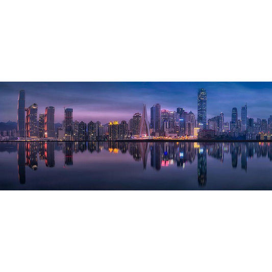 Chongqing Reflection Black Modern Wood Framed Art Print by Xu, Mei