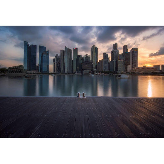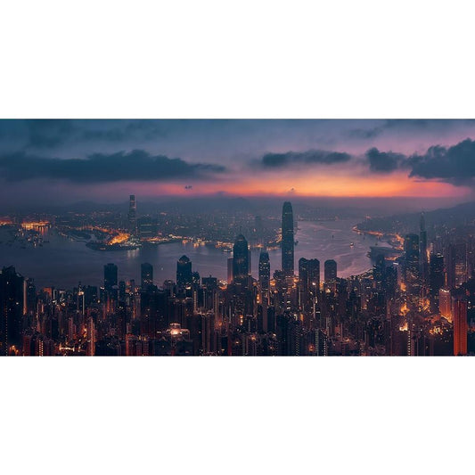 Sunrising Hong Kong Black Modern Wood Framed Art Print by De La, Javier