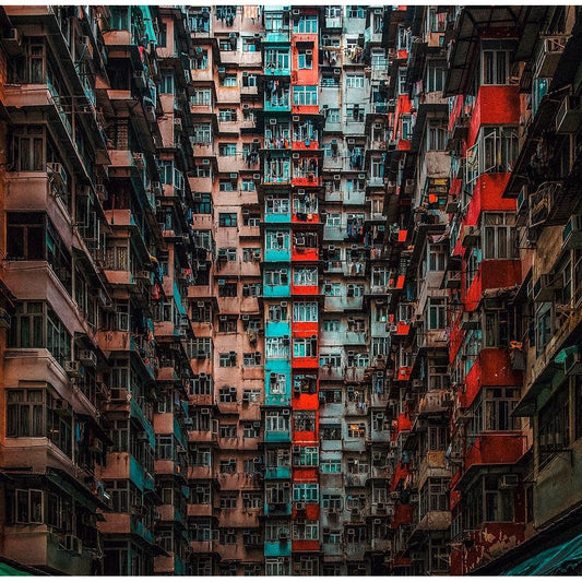 Apartments In Hong Kong Black Modern Wood Framed Art Print by Poto, An