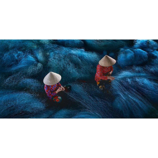 Net Mending Black Modern Wood Framed Art Print by De La, Javier