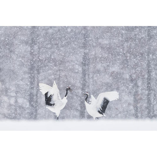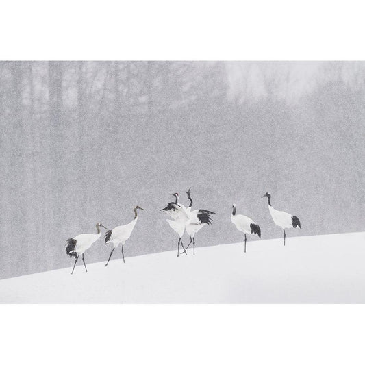 Japanese Cranes Black Modern Wood Framed Art Print by Marchegiani, Roberto