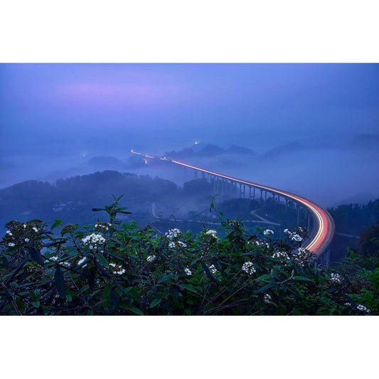 Bridge In Blue Hour Black Modern Wood Framed Art Print by Xu, Mei