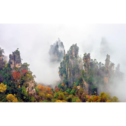 Zhang Jia Jie Fall Color Black Modern Wood Framed Art Print by Zhu, Hua