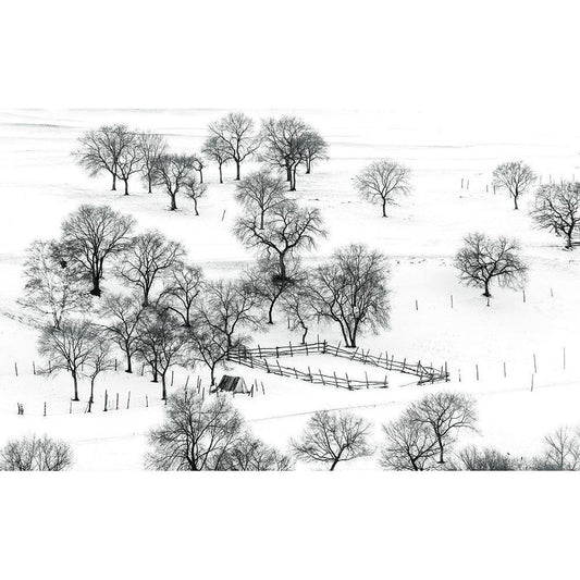 Bashang Winter Black Modern Wood Framed Art Print by Zhu, Hua