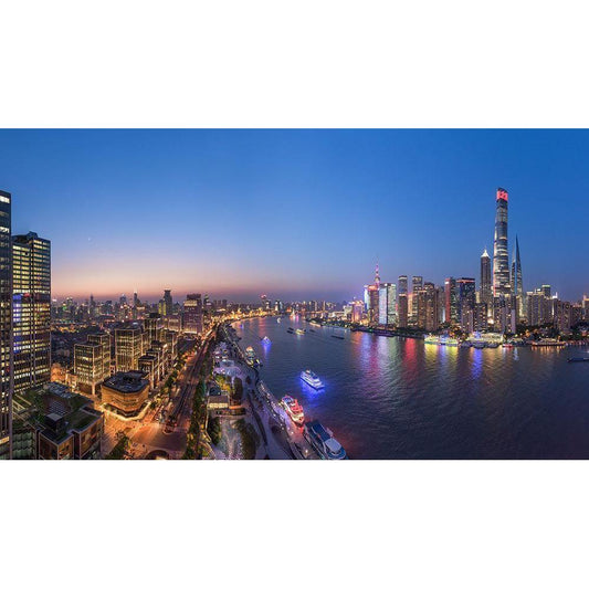 The Blue Hour In Shanghai Black Modern Wood Framed Art Print by Chen, Zhibo