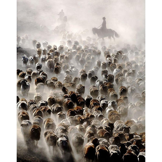 Yaks In Snow Black Modern Wood Framed Art Print by Zhu, Hua