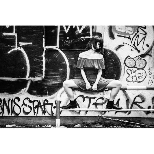 Crowded Spaces Black Modern Wood Framed Art Print by Macua, Gerald