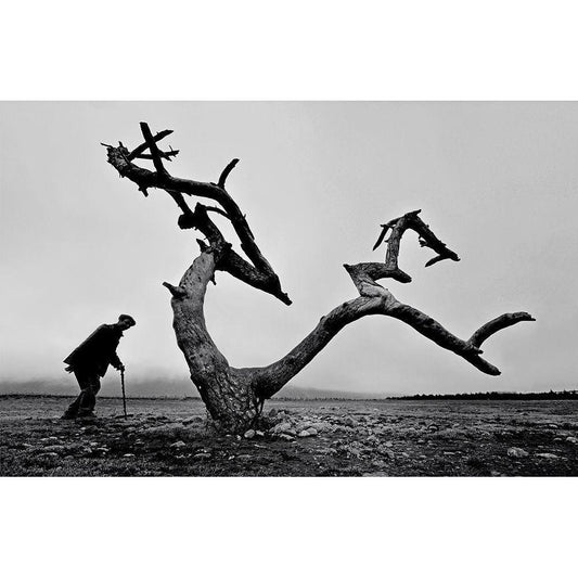 Old Man And Tree Black Modern Wood Framed Art Print by Tang, Wei