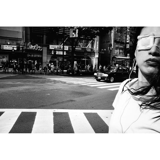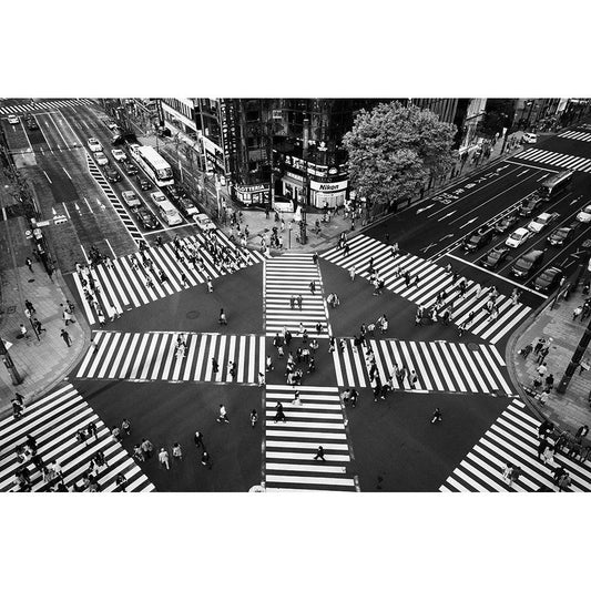 People Crossing Black Modern Wood Framed Art Print by Tajima, Koji