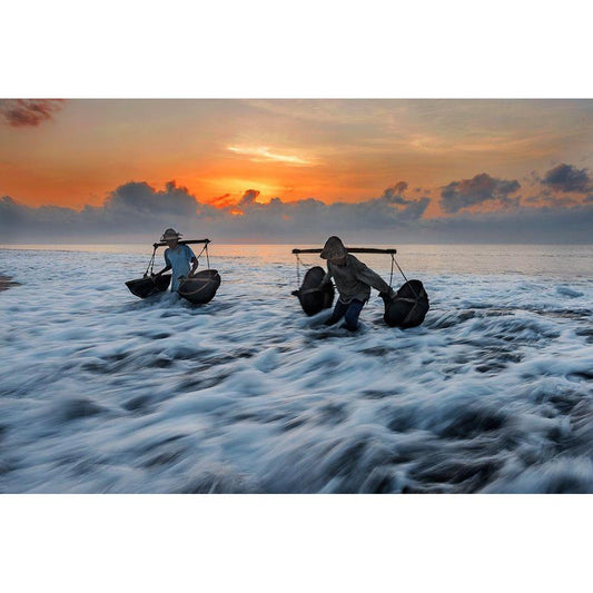 Collecting Seawater Black Modern Wood Framed Art Print by Raja, Pradeep