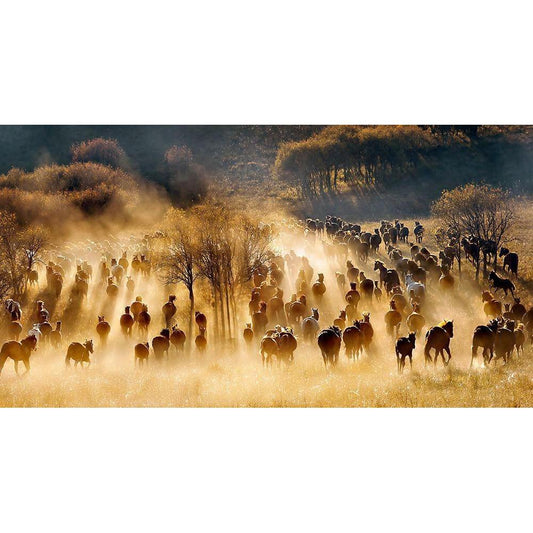 Horses Black Modern Wood Framed Art Print by Zhu, Hua