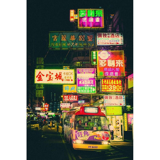 Mong Kok Minibus Black Modern Wood Framed Art Print by Valentine, David