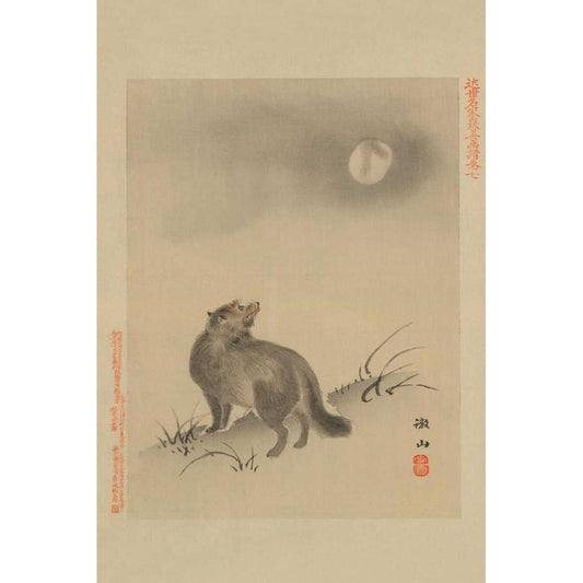 Fox Black Modern Wood Framed Art Print by Unknown