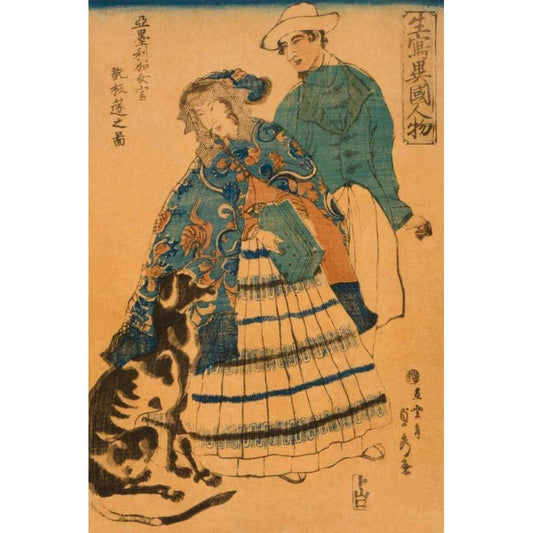 American lady playing accordion (Amerika jokan hansui o gansuru no zu), 1860 Black Modern Wood Framed Art Print by Utagawa, Sadahide