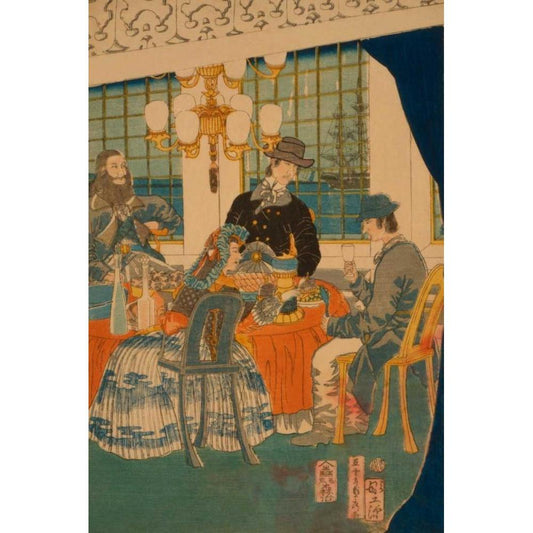 Parlour of a foreign mercantile house in Yokohama (Yokohama ijin shokan zashiki no zu), 1861 Black Modern Wood Framed Art Print by Utagawa, Sadahide