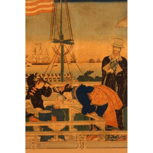 American merchant strolling in Yokohama (Yokohama torai Amerika shonin ryoko no zu), 1861 Black Modern Wood Framed Art Print by Utagawa, Sadahide