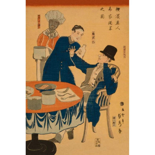 Banquet at a foreign mercantile house in Yokohama (Yokohama ijin shoka shuen no zu), 1861 Black Modern Wood Framed Art Print by Utagawa, Sadahide