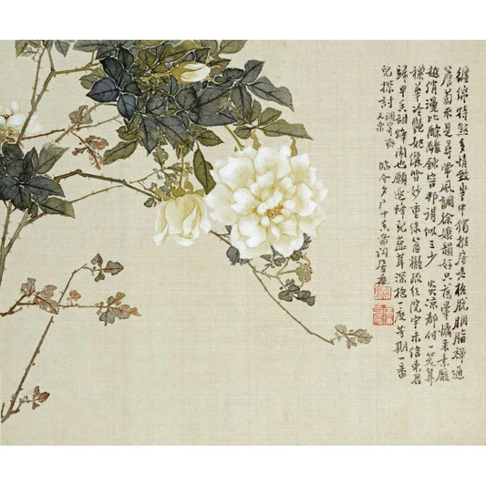 Flowers. From An Album of Ten Leaves Black Modern Wood Framed Art Print by Lian, Ju