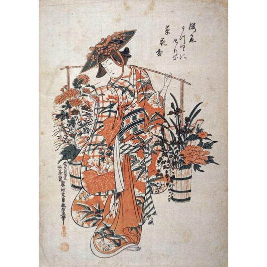 A Beauty Wearing Festival Garb Black Modern Wood Framed Art Print by Masanobu, Okumura
