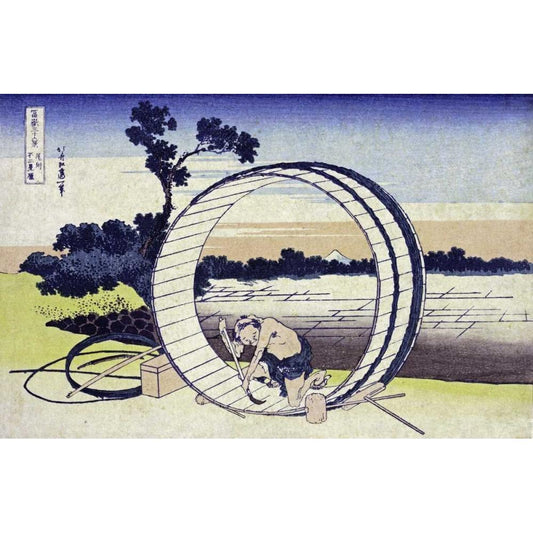 Fields In Owari Province Black Modern Wood Framed Art Print by Hokusai