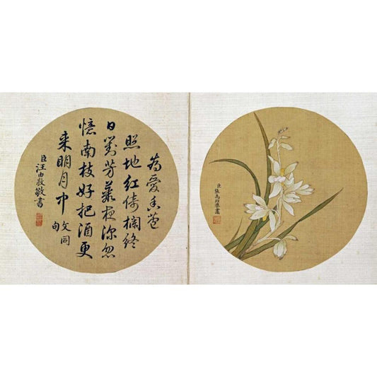 Flowers and Calligraphy Black Modern Wood Framed Art Print by Weibang, Zhang