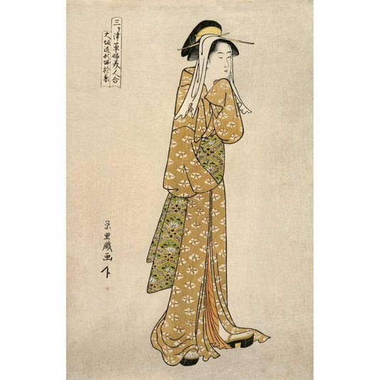 The Streetwalker Okane Black Modern Wood Framed Art Print by Eiri, Chokyosai