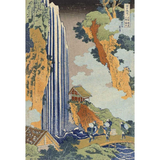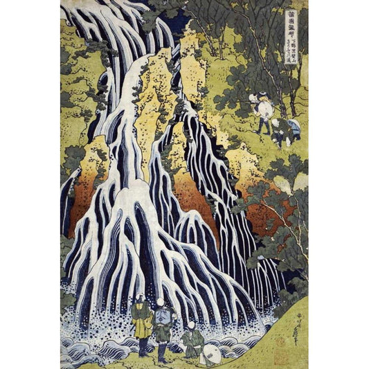 The Kirifuri Waterfall Black Modern Wood Framed Art Print by Hokusai