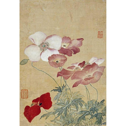 Poppies Black Modern Wood Framed Art Print by Shouping, Yun