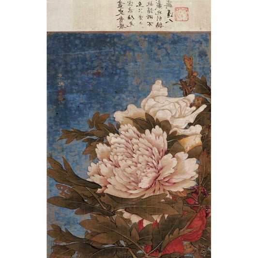 Peonies Black Modern Wood Framed Art Print by Gang, Shi