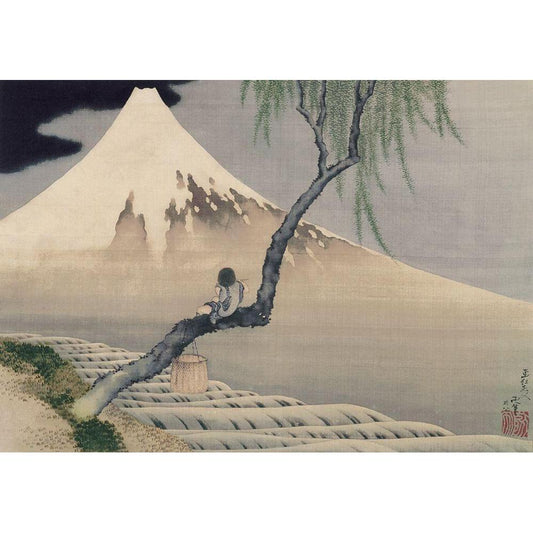 Boy Viewing Mount Fuji, 1839 Black Modern Wood Framed Art Print by Hokusai, Katsushika