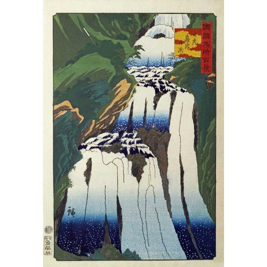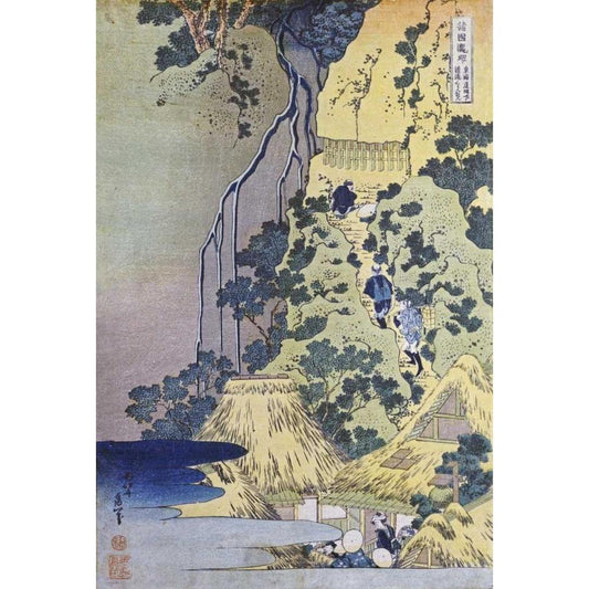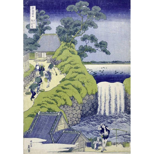 Aoigaoka Waterfall in the Eastern Capital Black Modern Wood Framed Art Print by Hokusai
