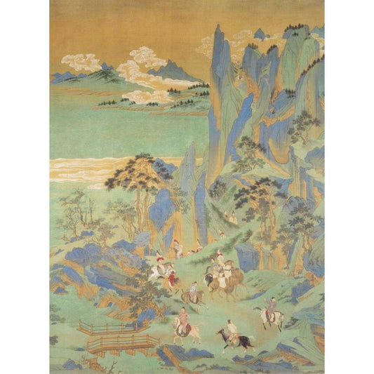 Travellers In The Mountains Of Shu Black Modern Wood Framed Art Print by Anonymous