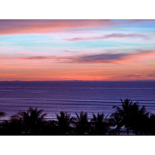 Sea by palm tree at dusk, elevated view Black Modern Wood Framed Art Print by Frank, Assaf