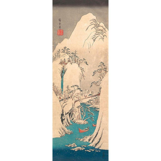 Snowy Gorge Black Modern Wood Framed Art Print by Hiroshige, Ando