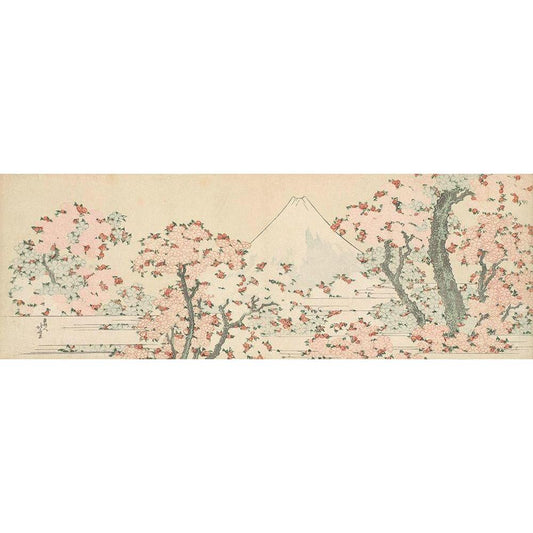 Mount Fuji with Cherry Trees in Bloom Black Modern Wood Framed Art Print by Hokusai, Katsushika
