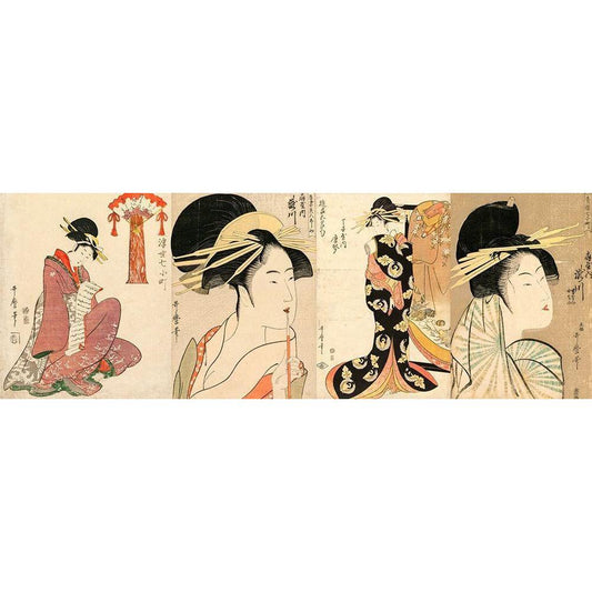 A Selection of Beautiful Women Black Modern Wood Framed Art Print by Utamaro, Kitagawa