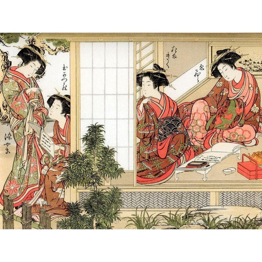 Japanese Beauties, 1776 Black Modern Wood Framed Art Print by Shunsho, Katsukawa