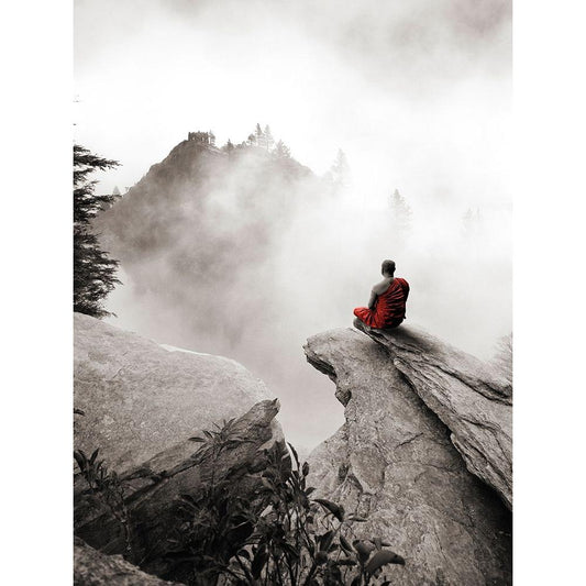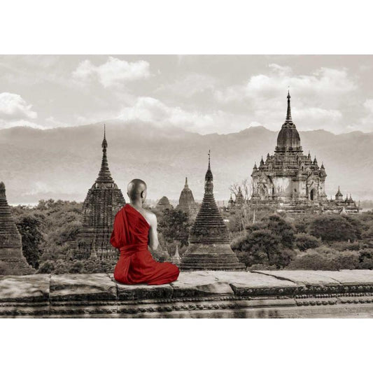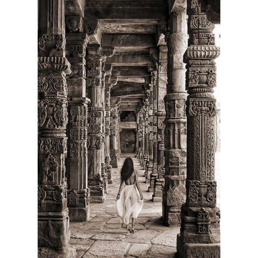 At the Temple-India (BW) Black Modern Wood Framed Art Print by Moreau, Marc