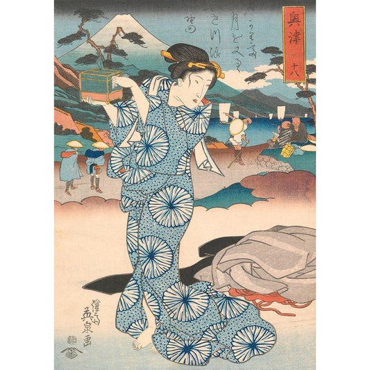 Standing woman with box Black Modern Wood Framed Art Print by Eisen, Keisai