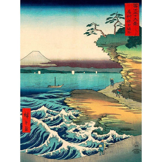 Mount Fuji seen through the waves at Manazato no hama Black Modern Wood Framed Art Print by Ando, Hiroshige